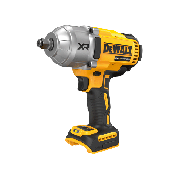The new high torque impact wrench with the brushless motor delivers an incredible 1396 Nm fastening torque and up to 1898 Nm of “breakaway” torque ensures removal of the tightest bolts. 4 mode membrane switch with precision Wrench allows for better application control. 1/2” square drive with hog ring allows quick socket changes. Variable trigger allows complete control over all applications. Efficient brushless motor delivers high performance, extends tool life and allows for much shorter design. Bright white LED with delay feature for improved visibility and functionality. Now with brightness control so you can dim or turn off the light to suit the environment. Comfortable rubber XR grip and switch for greater application comfort and maximum control.